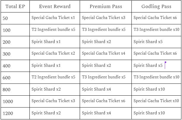 You will be able to obtain rewards based on how much EP you have accumulated, and for those who hold our Godling and Premium pass there will be extra rewards!