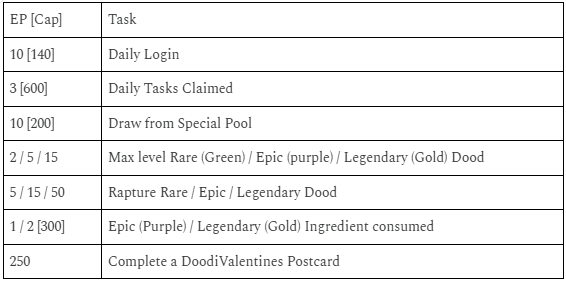 Dear fellow doods~ our biweekly events have officially begun! Starting with our DoodiValentines Special! Special doods will be visiting and special rewards will be given to diligent godlings who take care of their doods~